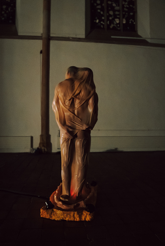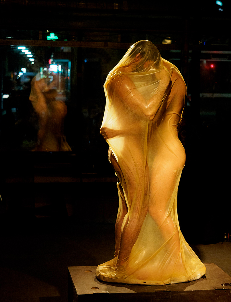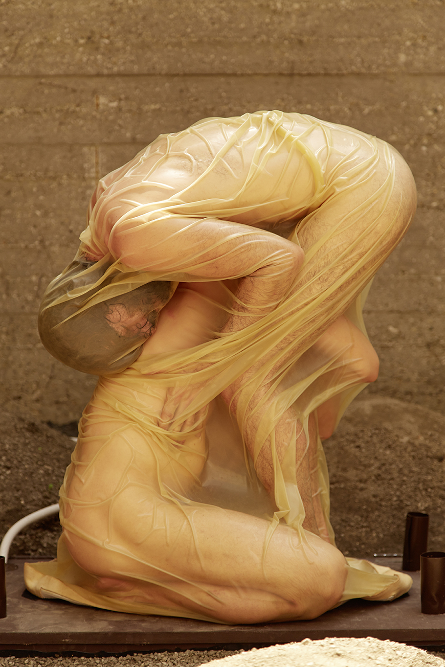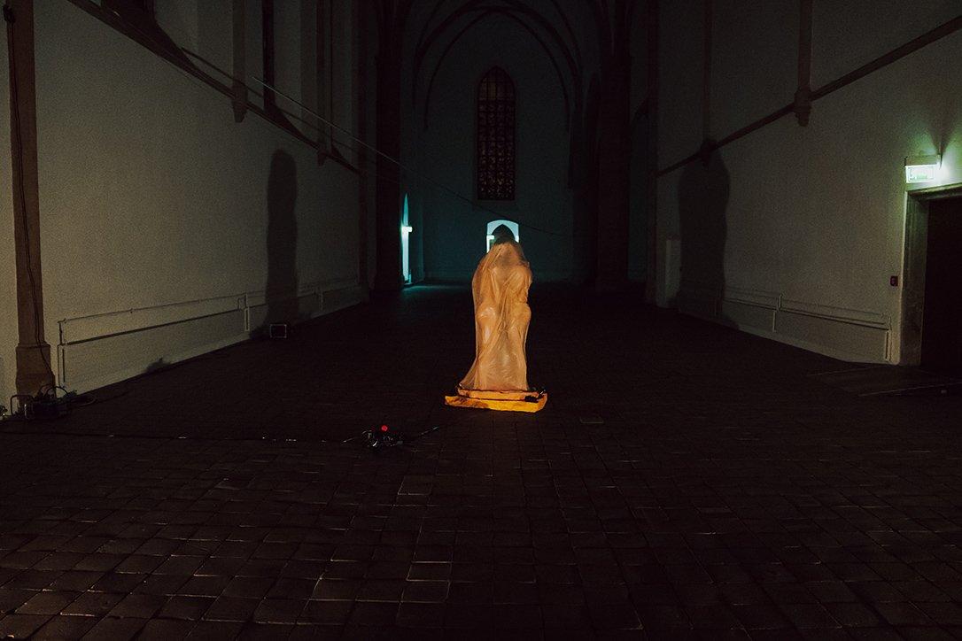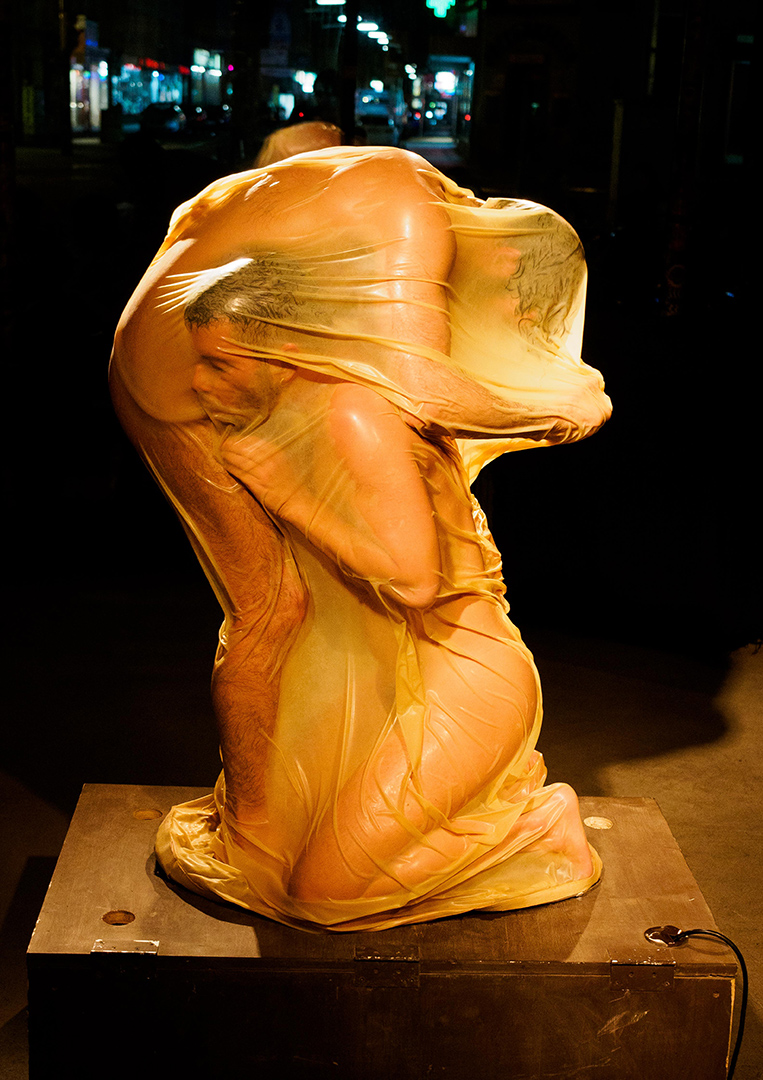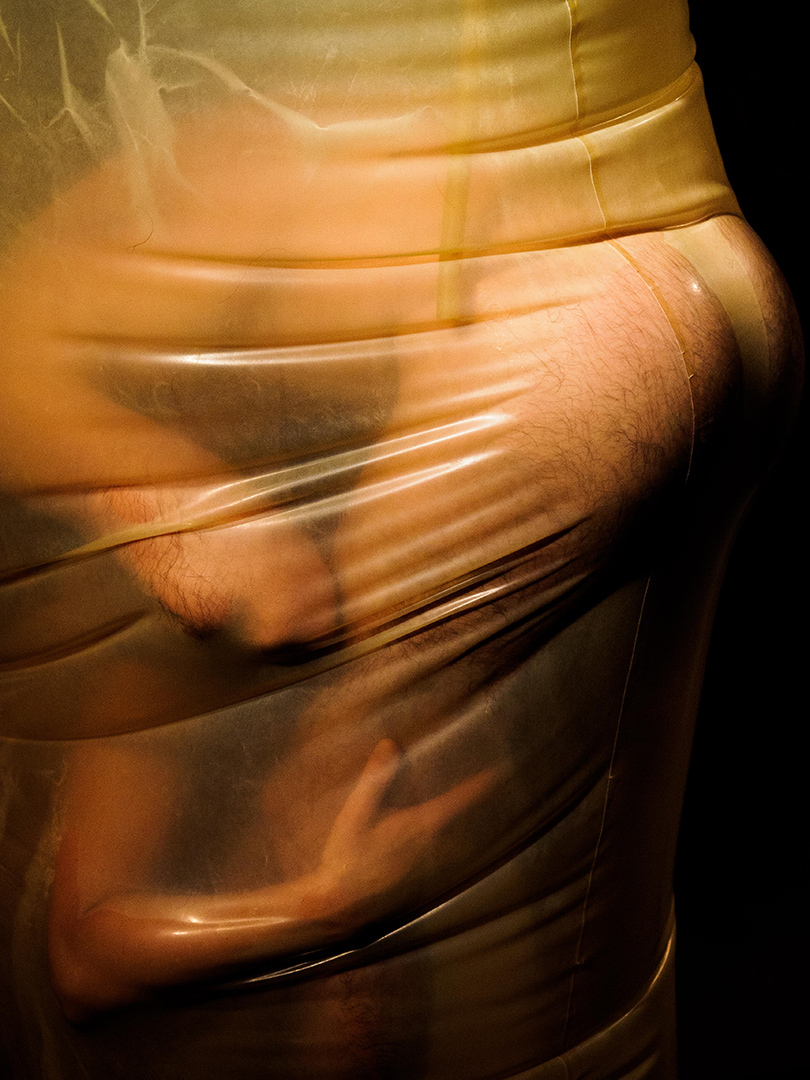 The one-on-one performance installation refers to Octave Mirbeau‘s novel The Torture Garden. The artists Otto Krause and Milan Loviška plant here a utopian potential of the urge for sexual liberty. They harvest sublimated violence, death and lust through the practice of total enclosure. In their own post - pornographic approach they oppose the superficial societal self-exposure and display with the creation of intimacy and eroticism, which are the subjects of passion and poetic contemplation. Their „hortus conclusus,“ draped in latex, is a utopian setting. It is a simulation that starts in the womb and continues through the skin to the point of ‚stepping out of the world‘. The installation is adaptable for diverse indoor and outdoor environments.