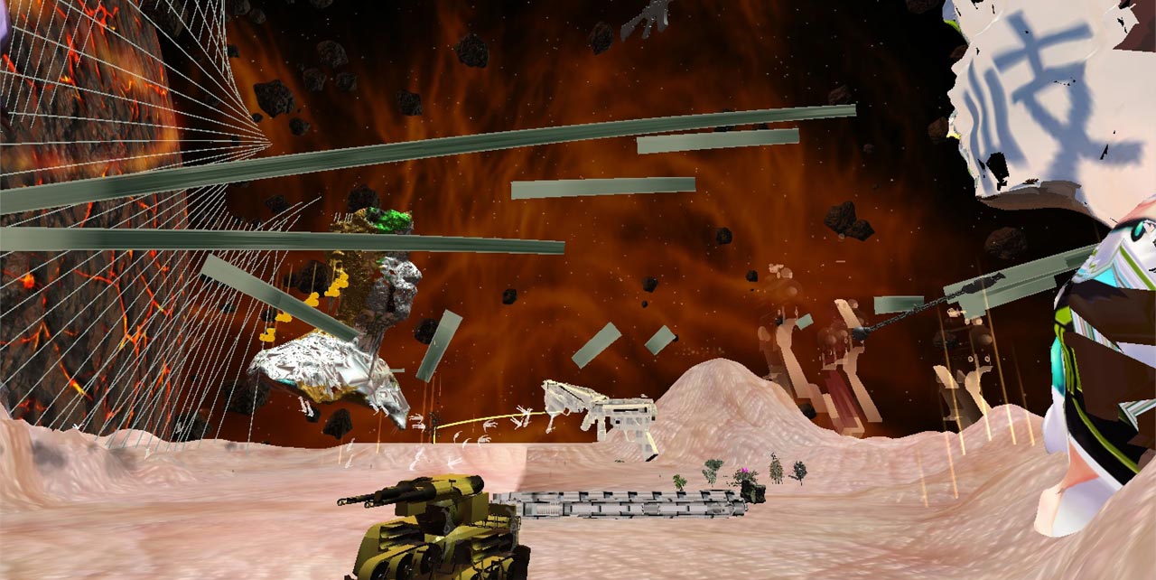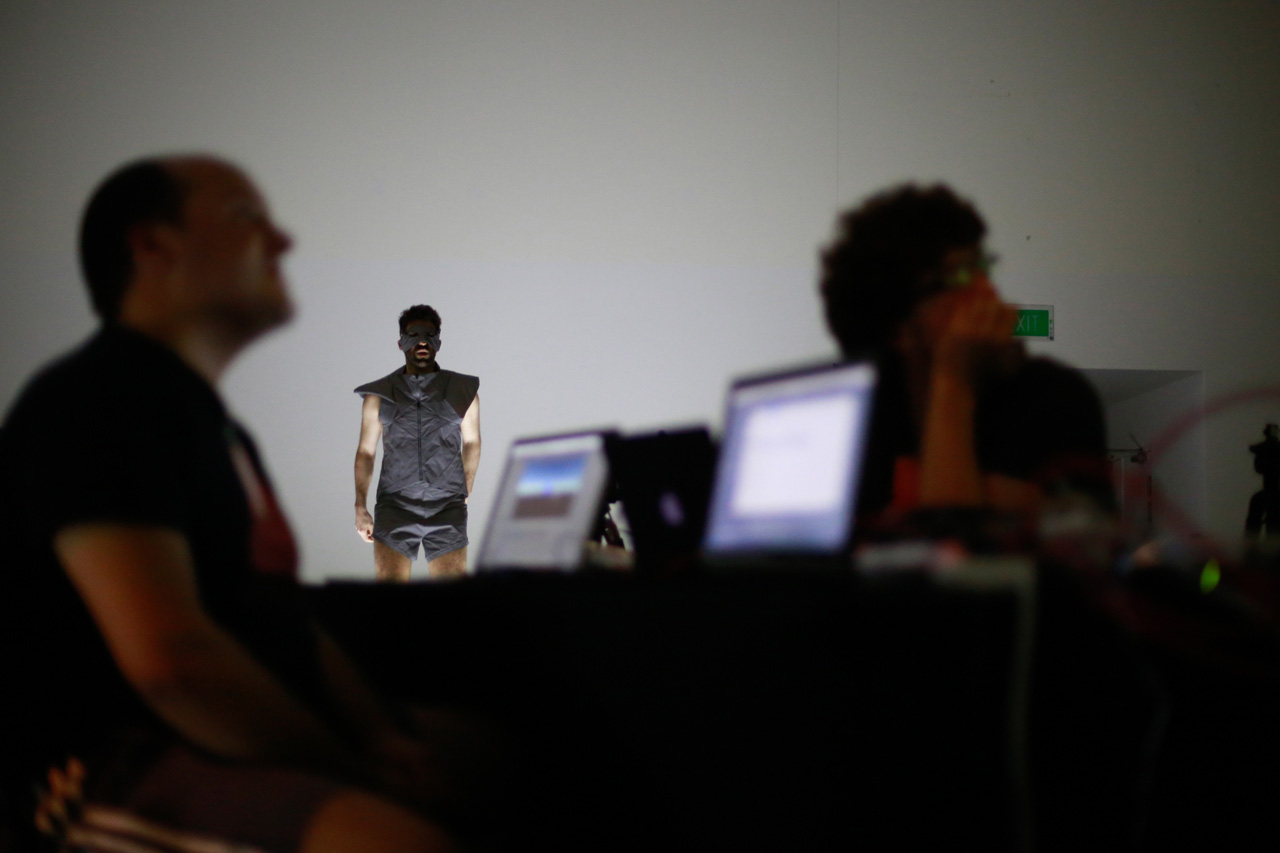 The artists transform the activity of jumping flesh into virtual representations and digital interactions. Cross-exposing the physical and the digital, performance and signification, they enquire into the new narratives that unfold from these interstices. The performance work for the Betwixt Festival 2016 re-invents some of the technology developed in the Third Life Project and introduces the procedural mesh manipulation and 3D modeling into play.